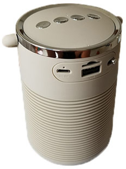 Parlante amplificador de 5W bluetooth con radio FM con scanner automático. Hasta diez metros de rango efectivo. Batería de litio recargable 3.7 V(1200 mAh)por cable USB provisto, tiempo estimado de funcionamiento 3 a 4hs aprox. Botón de encendido con indicaciones de conexión sonoras y de luz. Micrófono incorporado para función manos libres y teclas para control de volumen y selecciones. Lector de tarjeta micro SD (hasta 32G) y entrada USB para pendrives. Compatible con la mayoría de los sistemas con conexión bluetooth. Provee cable de conexión y puerto de entrada micro USB para carga. Caja contenedora en cartón blanco e instrucciones.